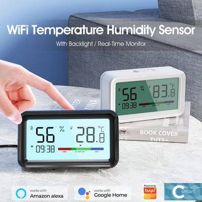 WiFi Indoor Hygrometer & Thermometer Sensor com luz de fundo, controle remoto do aplicativo, integração de voz para Alexa & Google Home Tuya Smart Home Digital Solution
